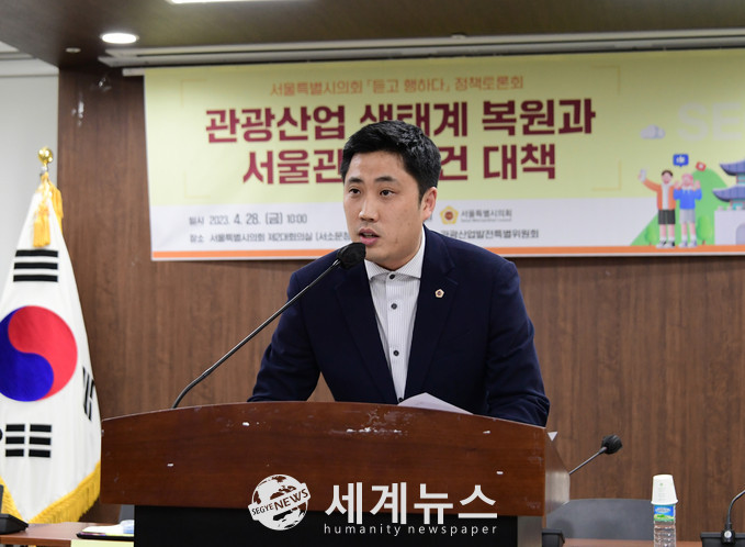 [세계뉴스 윤소라 기자] 서울시의회 관광산업발전 특별위원회(위원장, 송경택)는 28일 코로나19 이후 전례 없는 침체와 위기를 맞은 관광산업 부흥을 위해 현장 대표와 전문가들의 의견을 수렴하는 ‘서울특별시의회 듣고 행하다 정책토론회’를 개최했다.