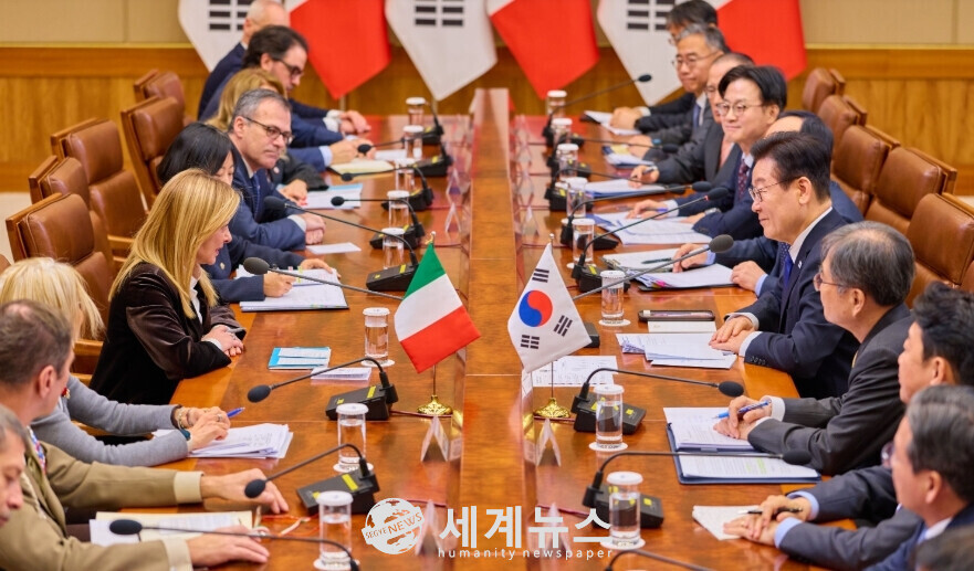 [세계뉴스 = 정서영 기자] 이재명 대통령이 19일 청와대에서 조르자 멜로니 이탈리아 총리와 정상회담을 갖고 양국 간 전략적 동반자 관계를 한층 강화하기로 합의했다. 두 정상은 글로벌 공급망 재편과 기술 경쟁이 가속화되는 상황에서 인공지능(AI)과 반도체 등 첨단 제조업과 미래 핵심 기술 분야에서의 협력을 확대하고, 주요 글로벌 현안에 대한 공조를 강화하기로 의견을 모았다.
