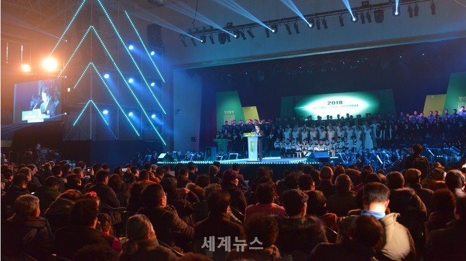 | ▲ 담양군은 무술년 새해 첫날 1일 오후 2시 담양종합체육관에서 군민과 1000인 합창단을 비롯한 관계기관 및 사회단체 등 2500여 명이 참석한 가운데 ‘새천년 첫날 기념행사’를 개최했다. © 세계뉴스 |