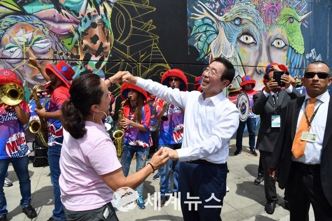 또한 박 시장은 주콜롬비아대한민국대사관(대사 김두식) 주관으로 열리는 경연대회에 참석했다. 전통무용과 노래 등 2개 부문 경연이 진행되며 우승자에게는 K-POP 본고장인 대한민국을 방문하는 특전이 주어진다.