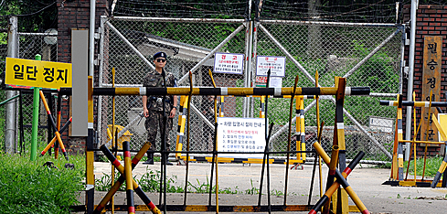 | ▲ 성산포대. 군부대 정문앞 군인이 경계를 서고 있다. © 세계뉴스 |