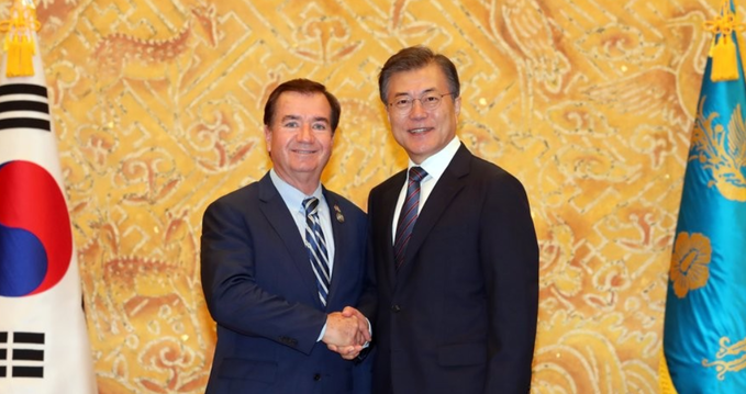 [세계뉴스] 탁병훈 기자 = 문재인 대통령은 28일 청와대에서 에드 로이스 미국 하원 외교위원장 등 공화당 소속 의원단과의 접견하고, 그동안 대북정책과 관련한 한국의 입장을 지지해 준 데 대해 감사의 뜻을 전했다.