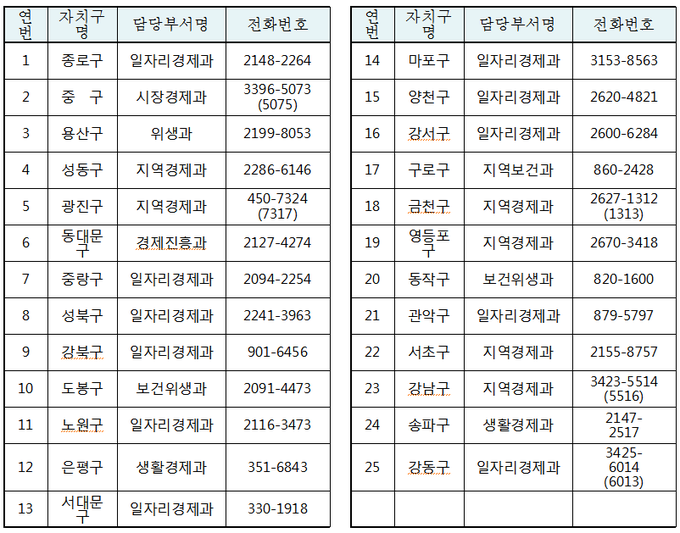 | ▲ 서울시 25개 구청의 동물학대 신고 및 긴급보호동물 구조요청 전화번호 © 세계뉴스 |