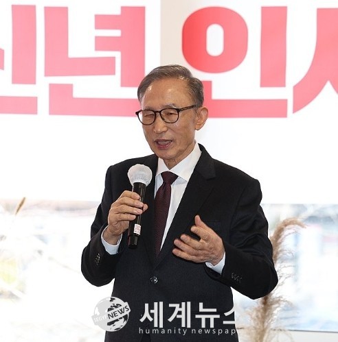 | ▲ 2일 이명박 전 대통령이 서울시의회 국민의힘 의원들과 신년 인사회에서 인사말하고 있다. |