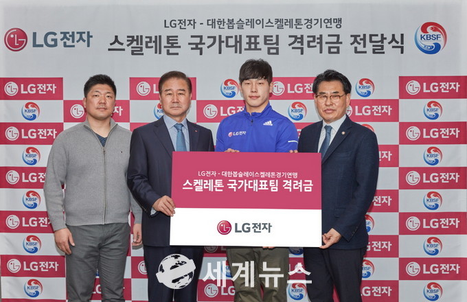 [세계뉴스] 조홍식 기자 = LG전자가 2018 평창 동계올림픽에서 금메달을 획득하며 대한민국 썰매 종목의 새 역사를 쓴 ‘스켈레톤 황제’ 윤성빈 선수와 스켈레톤 국가대표 선수단(코칭스태프 포함)에 3억원의 격려금을 전달했다.