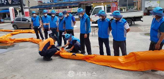 또한, 해양오염사고 발생 시 롤형 및 펜스형 흡착재를 이용하여 해경이 도착하기 전에 신속하게 유류확산 방지 등 초동조치를 할 수 있는 방제 기자재 사용법에 대한 교육을 진행한다.