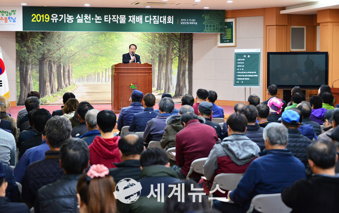 [세계뉴스] 한차수 기자 = 담양군(군수 최형식)은 지난 15일 군청 대회의실에서 친환경농업인, 논 타작물 재배농가, 관계 공무원 등 150여 명이 참석한 가운데 ‘유기농 실천 및 논 타작물 재배 성공 다짐대회’를 열었다.