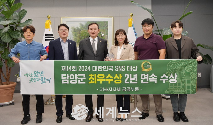 [세계뉴스 양경희 기자] 담양군(군수 이병노)이 지난 17일 열린 ‘제13회 대한민국 SNS 대상’에서 기초지자체 부문 최우수상을 받으며 2년 연속 수상의 쾌거를 거뒀다.
