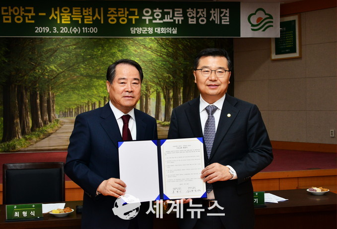 담양군은 지난 20일 담양군청 대회의실에서 최형식 담양군수와 류경기 중랑구청장을 비롯한 관계자 30여 명이 참석해 협정식을 개최했다고 밝혔다.