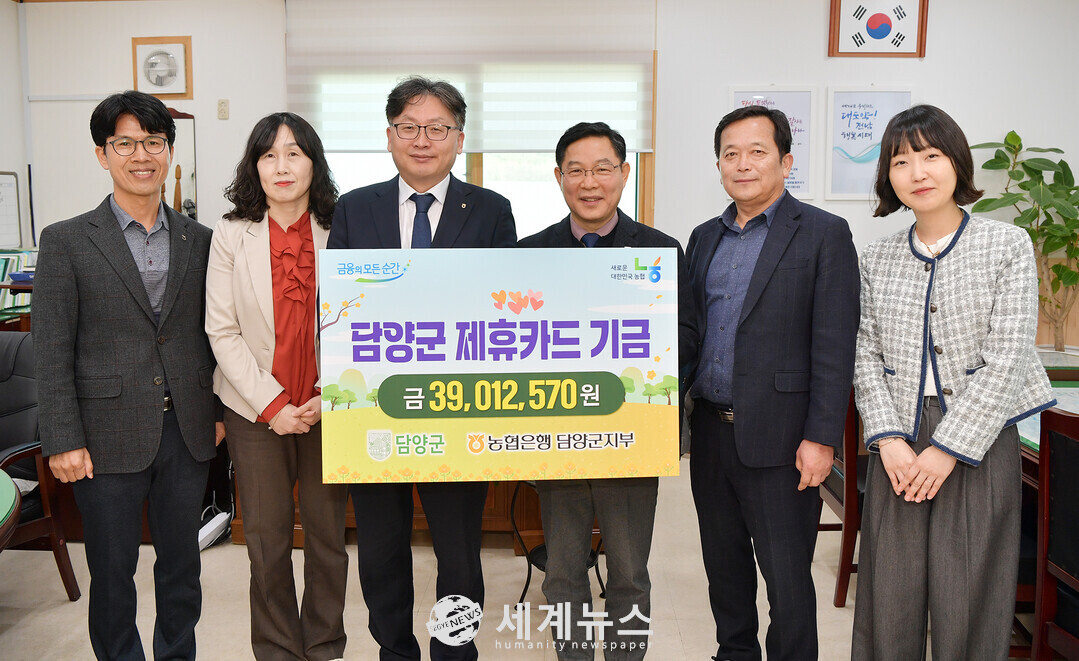 [세계뉴스 = 양경희 기자] 14일 담양군은 군청에서 정광선 군수 권한대행, 이광재 NH농협 담양군지부장이 자리한 가운데 NH농협 제휴카드 적립기금 전달식을 가졌다.