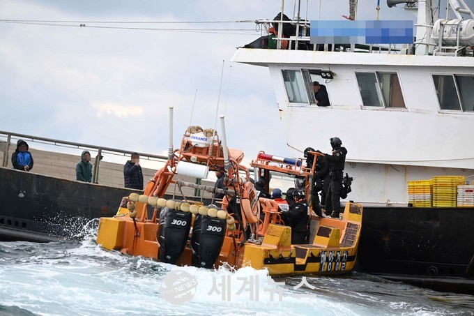 [세계뉴스 윤준필 기자]서해해경은 불법 중국어선 극 성수기에 맞춰 불법조업 의지 사전차단과 조업질서 확립을 위해 11월 29일부터 12월 1일까지 2박3일간 특별단속을 실시했으며,11월 30일 오후 2시 50분경 가거도 북서방 약 77km 해상에서 불법 조업중인 중국어선 1척을 조업일지 부실기재 혐의로 나포했다.