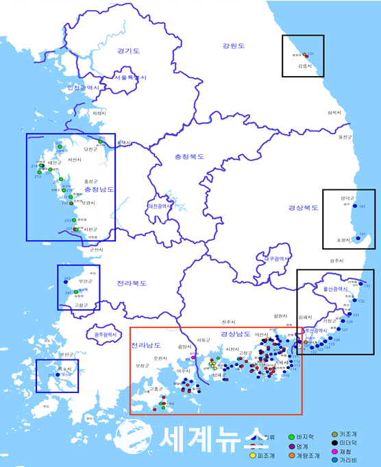 | ▲ 생산해역별 패류독소 조사지점 |