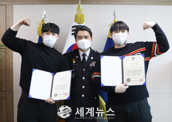 | ▲ 지난 1월 30일 대천해수욕장 익수자를 발견, 구조해 심폐소생술로 생명을 살린 김재성, 김재희 형제가 보령해양경찰서로부터 감사장을 받은 사진 |