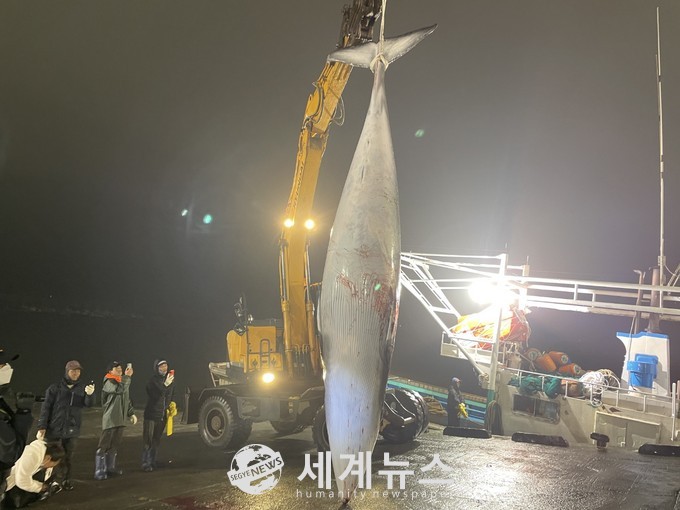 A호는 29일 자정경 홍원항으로 입항했으며 해양경찰 홍원파출소 경찰관이 금속탐지기를 이용해 몸속에 남아있는 작살을 확인하고 표피의 작살 흔적 등 죽은 밍크고래와 상괭이의 불법 여부를 확인한 결과 불법포획 흔적은 발견되지 않았다.