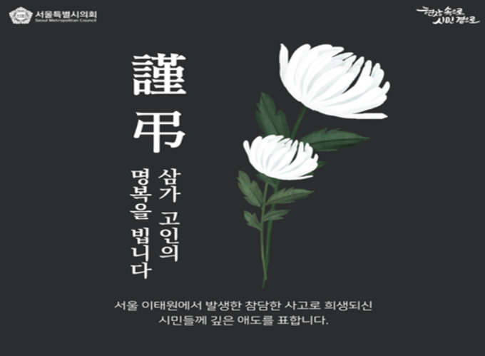 [세계뉴스 정서영 기자] 서울시의회는 최초 30일 오전 11시 33분 이태원 핼러윈 축제 참사 애도의 성명서 보도자료를 홍보실에서 내고 고인의 명복을 빌었다.