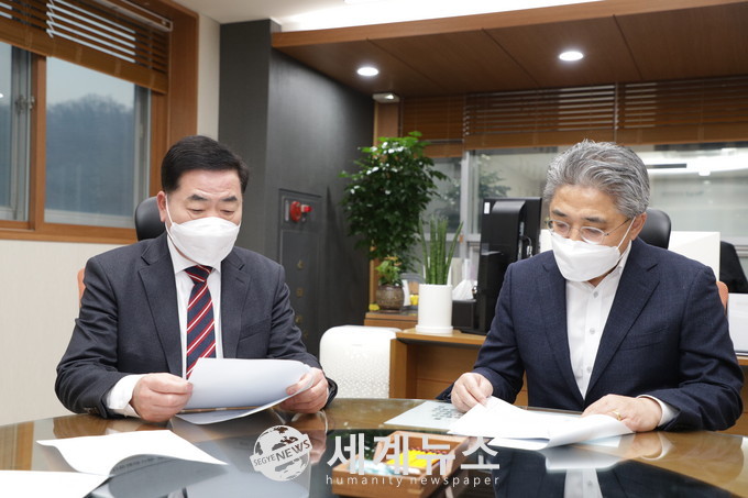 | ▲ 서울시의회 행정자치위원회 김원태 위원장(왼쪽)이 한국지방세연구원 강성조 원장을 만나 지방자치 발전을 위한 선도적 역할을 주문했다. |
