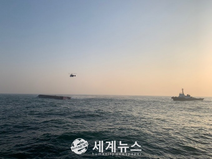 한편, 현재 전복된 선박은 배 바닥이 완전히 보일 정도로 뒤집혀진 상태에서 오른쪽으로 10도 정도 기운 것으로 확인됐으며, 해경은 실종자 발견할 때까지 야간 수색작업을 계속 벌일 방침이다.