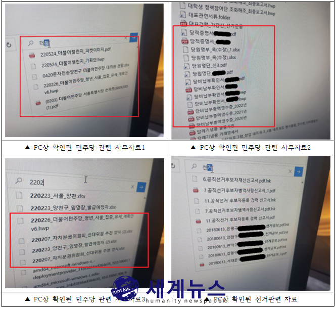 | ▲ 서울창업카페 양천신정점의 공용 PC에서 민주당 측의 지난 총선, 대선, 지선 용도로 추정되는 당원 명부 및 후원회 회계자료 등이 발견됐다. |