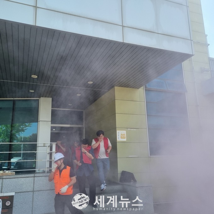 금번 훈련에 앞서 참석자들에게 소화기, 소화전 사용법을 교육한 후 훈련을 시작하였다. 훈련 시작 후 초기 발견자가 신고 및 상황전파, 소화기를 이용한 초기진화를 시행한 후 유통인 대피도 실전처럼 시행했다.