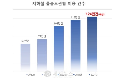 | ▲ 물품보관함 연간 이용 건수(2020년~2024년). |