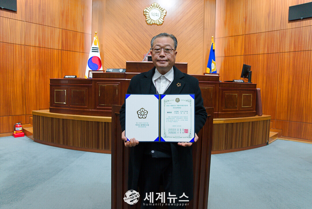 [세계뉴스 = 윤준필 기자] 군산시의회 한경봉 의원이 여의도정책연구원이 주관한 '2025 지방자치평가 의정정책대상'에서 기초의회 부문 우수상을 수상했다. 한 의원은 경제건설위원회 위원으로서 예산과 행정사무감사 과정에서 현장과 데이터를 기반으로 한 철저한 감시 활동을 펼쳐 높은 평가를 받았다.