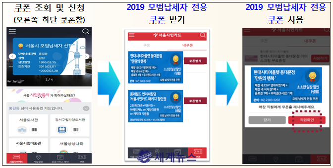 이를 위해 9일부터 2019년 서울시 모범납세자를 대상으로 모바일 모범납세자증 발급 및 우대할인권 발행을 우선 시행하고, 향후 관계 부서와 협의를 거쳐 에코마일리지 및 승용차마일리지 우수 회원 에게도 모범시민 우대 혜택을 확대할 계획이다.