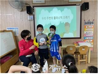 또한, 플라스틱 쓰레기 줄이기 약속 정하기와 어린이용 대나무 칫솔을 전달하며 체능단원들이 직접 환경을 보호할 수 있는 기회를 마련했다.