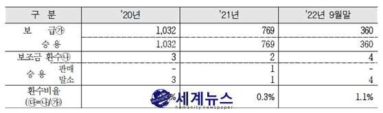 | ▲ 최근 3년간 수소차 보조금 환수율. (기후환경본부 제공) |