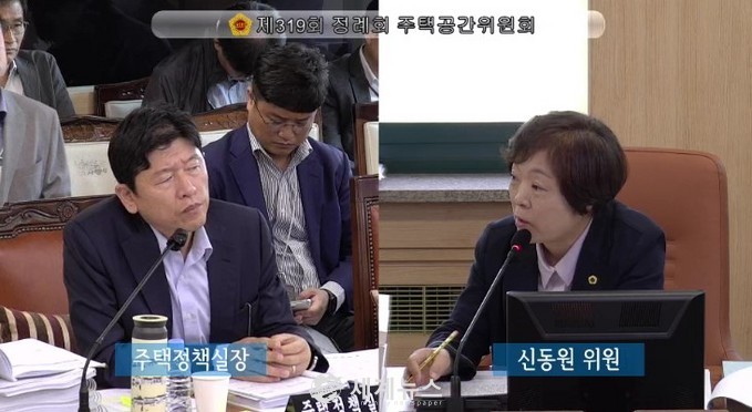 | ▲ 제319회 정례회 제3차 주택공간위원회에서 신동원 의원이 주택정책실장에게 질의하고 있다. |