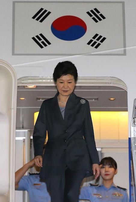 [서울=세계뉴스] 조상호 기자 = 박근혜 대통령이 30일 오전 유엔 총회 참석을 마치고 성남 서울공항으로 귀국했다.