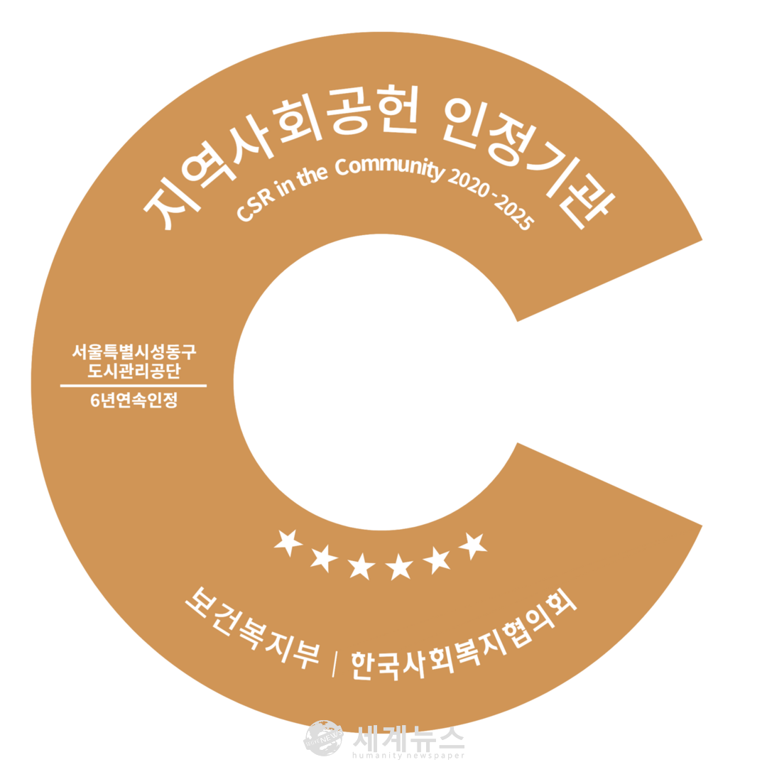 [세계뉴스 = 조홍식 기자] 성동구도시관리공단이 보건복지부와 한국사회복지협의회가 공동 주관하는 '2025년 지역사회공헌 인정제'에서 최고등급(S등급)을 달성하며, 3년 연속 최고등급을 유지했다.