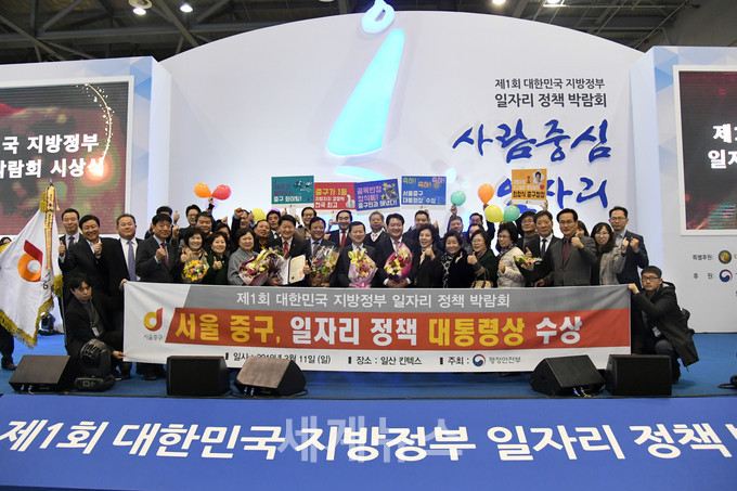 | ▲ 서울 중구(구청장 최창식)가 행정안전부에서 올해 처음 실시한 '대한민국 지방정부 일자리정책' 평가에서 대통령상을 수상했다. © 세계뉴스 |