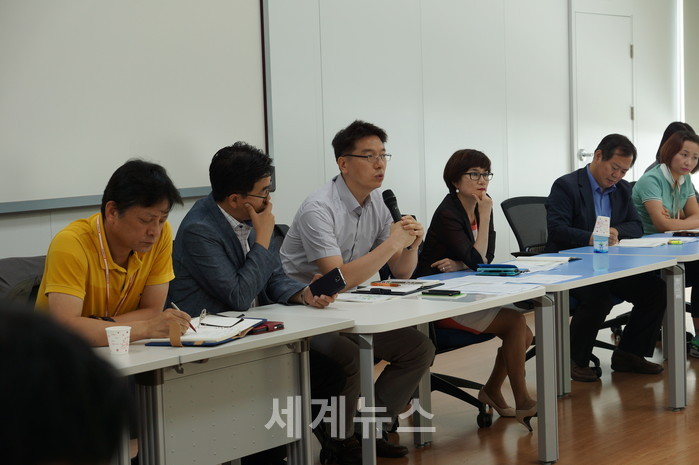 ▲ 광역자활센터 리더십 역량강화 과정에 참여하여 현장과 소통하는 보건복지부 임혜성자립자원과장(오른쪽 세 번째), 이승묵사무관(네 번째) © 세계뉴스 |