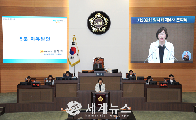 [세계뉴스 정서영 기자] = 송명화 서울시의원(더불어민주당, 강동3선거구)은 지난 6일 제289회 임시회 제4차 본회의에서 5분 발언을 통해 서울시가 서울시의회에 제출하는 민간위탁 동의안 등에 대한 체계적인 운영 방안 마련을 촉구했다.