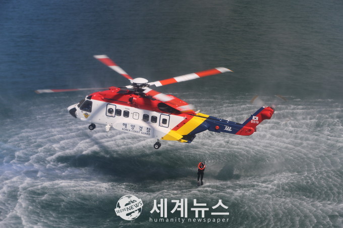 | ▲해양경찰 헬기를 이용해 인명구조 훈련을 실시하고 있는 사진 |