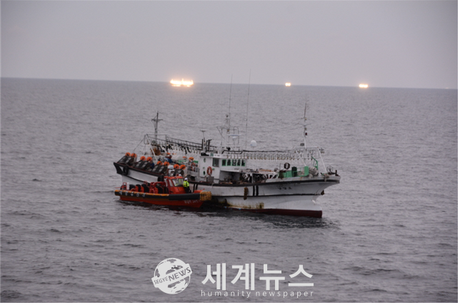 [세계뉴스 윤준필 기자] 해양수산부는 충남 태안군 격렬비열도 남서방에서 조업 중 화재사고가 발생한 근해채낚기어선 A호(포항선적, 29톤, 승선원 12명)를 구조해 예인 중이라고 밝혔다.
