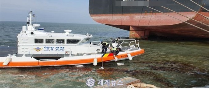 [세계뉴스 윤준필 기자] 연료탱크 균열로 바다에 기름을 유출한 외국 화물선이 해경에 검거됐다.