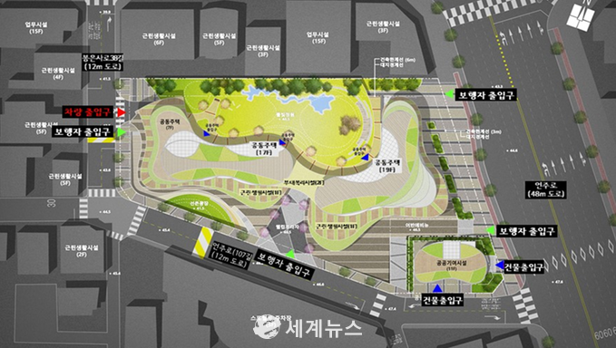 | ▲ 배치도. 주거복합시설 45,270.67㎡(지상19층, 지하5층), 문화시설.공공임대주택 4,182.21㎡(지상11층, 지하4층) |