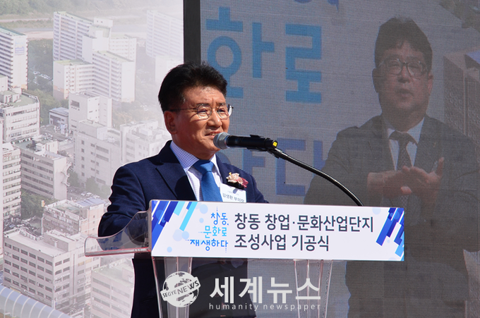 | ▲ 서울특별시의회 김생환 부의장이 18일 오전 서울특별시 도봉구 창동 1-28 부지에서 진행된 “창동 창업 및 문화산업단지” 기공식 행사에 참석해 축사를 하고 있다. |