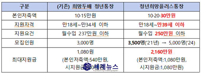 | ▲ 희망두배 청년통장 사업 및 청년희망플러스통장 사업(안) 비교. (출처: 서울시) |