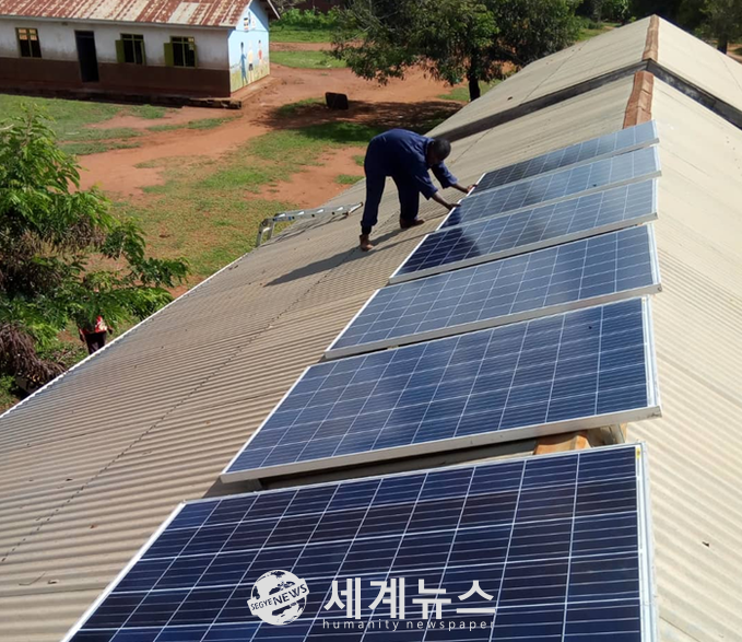 | ▲ 지난해 10월 우간다 쿠미 지역 초등학교에 신재생에너지 발전설비를 설치하고 있는 모습. |