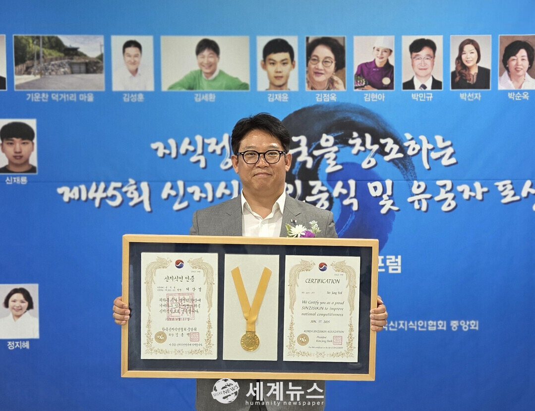[세계뉴스 = 윤소라 기자] 서울특별시의회 도시계획균형위원회 소속 서상열 의원이 한국신지식인협회중앙회가 주최한 '2025 제45회 대한민국 신지식인 인증식'에서 신지식인 인증서를 수여받았다.