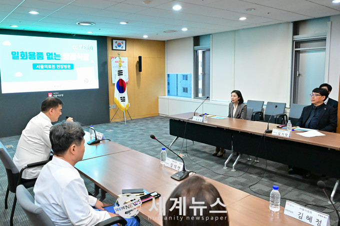 [세계뉴스 윤소라 기자] 최호정 서울특별시의회 의장은 잠실 야구경기장에 이어 서울의료원 장례식장을 방문해 빈소 내 다회용기 사용 현황을 점검했다.