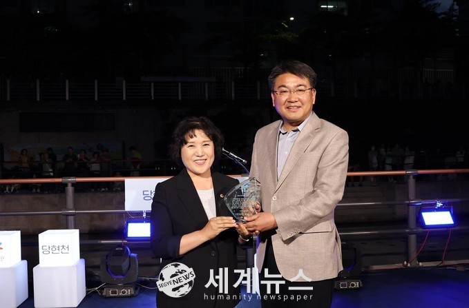 [세계뉴스 정서영 기자] 서울시의회 봉양순 환경수자원위원장(더불어민주당,노원제3선거구)이 지난 24일 노원구청으로부터 당현천 음악분수 설비확충에 대한 공로를 인정받아 감사패를 수상했다.