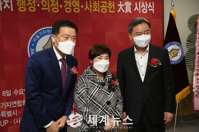 [세계뉴스 정서영 기자] 서울기자연합회(회장 정상린)는 지난 8일 오후 2시 서울특별시의회회관에서 ‘제14회 2021지방자치 행정·의정·경영·사회공헌 大賞’ 시상식에서 이승로·김선갑·이정훈 구청장이 행정대상을 수상했다.