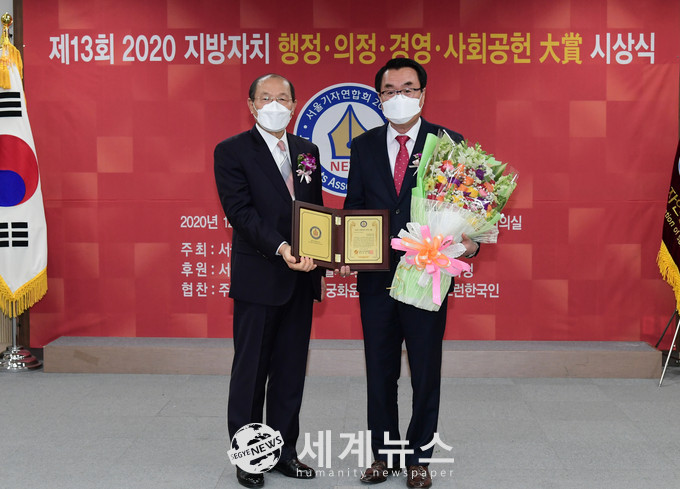 [세계뉴스 정서영 기자] 서울 중랑구의회 왕보현 의원(상봉제1동·신내제2동)이 지난 10일 서울특별시의회의원회관에서 열린 ‘2020 지방자치 행정·의정·경영대상’에서 지방자치 의정부문의 대상을 수상했다.