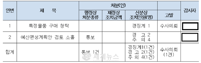 | ▲ 감사결과 처분내역. |