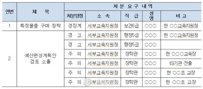 | ▲ 신분상 조치요구 내역. |