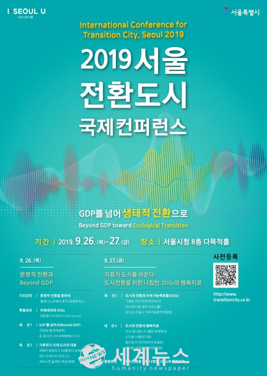 [세계뉴스 조홍식 기자] 서울시는 환경-경제-사회가 공존하는 새로운 문명, 이른바 ‘생태문명’으로 전환을 시도하는 ‘2019 서울 전환 도시 국제 컨퍼런스’를 개최한다고 밝혔다.