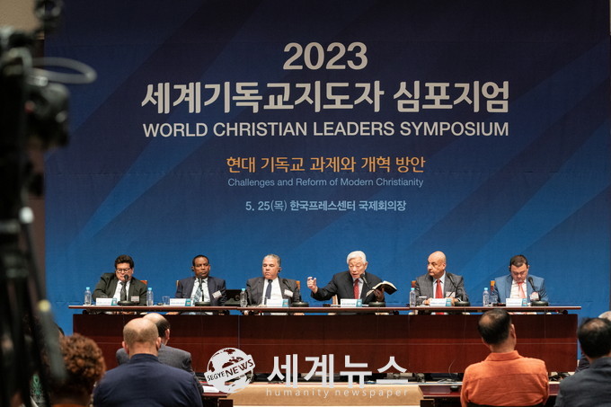 [세계뉴스 조홍식 기자] ‘현대 기독교 과제와 개혁 방안’을 주제로 한국프레스센터 국제회의장에서 2023 세계기독교지도자 심포지엄이 25일 개최됐다.